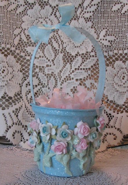 this is the basket I made her, knowing she loved roses, and blues and pinks...